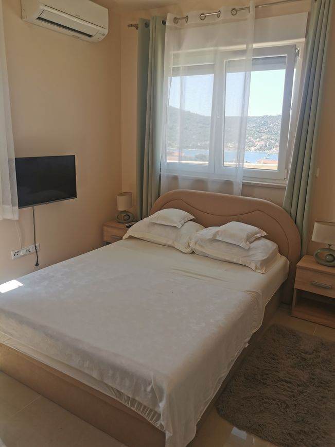 Das sehr geräumige Ein-Zimmerappartement ist mit einem Doppelbett, einer Klappcoch und einer vollwertigen Küche mit Essecke eingerichtet.