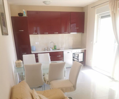 Der Wohnraum ist mit einer Klappcouch, einem Essplatz und einer voll ausgestatteten Einbauküche incl. Spülmaschine ausgestattet.